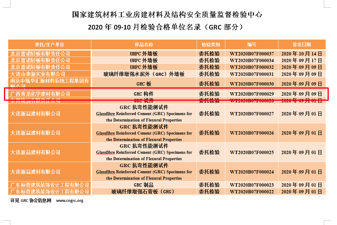 近日,国家建筑材料工业房建材料及结构安全质量监督检验中心对我司提供的GRC构件进行了统一检验,经过科学、严谨的检验,我司提供的GRC构件样品符合标准规定的数据要求,成功通过检验。